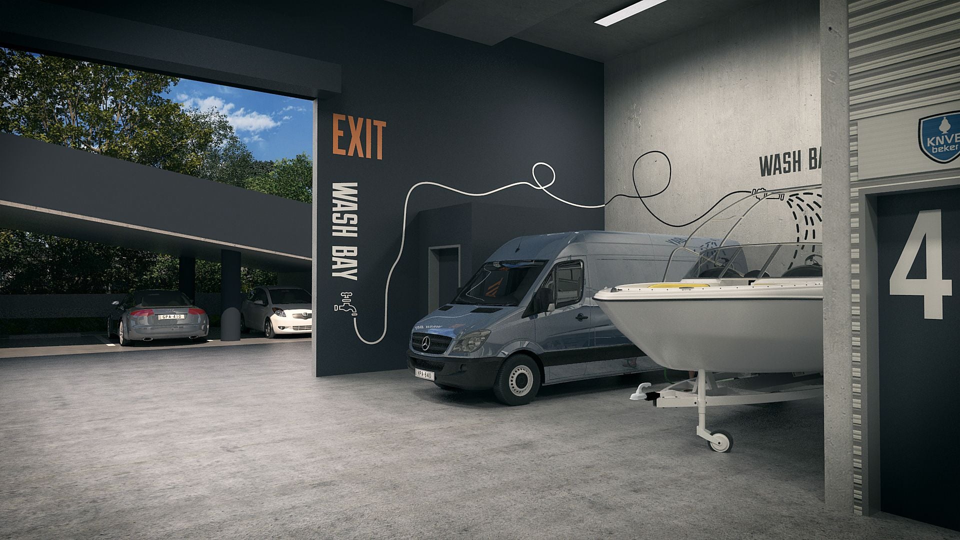 * Designated communal loading zone with combined wash bay.